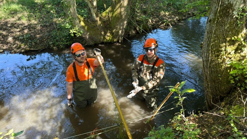 Sur place, le constat était sans appel : arbres abattus en travers du cours d’eau, végétation envahissante, obstacles accumulés au fil du temps. Chaussés de bottes de pêcheurs, les astreints sont entrés dans la rivière sans hésiter. Tronçonneuses et tire-fort en main, ils ont méthodiquement dégagé chaque obstacle, redonnant au courant la liberté de circuler librement.